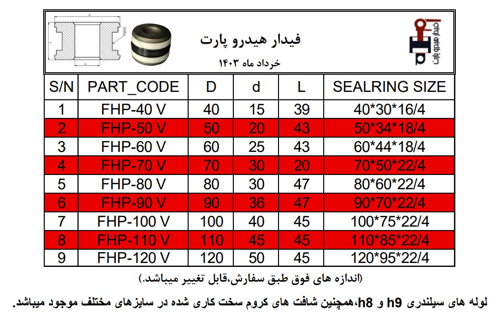 - سایر اجزای مورد نیاز برای مجموعه سیلندر، از جمله "لوله های سیلندری" با تلرانسهای دقیق h8 و h9 و همچنین "شافت های کروم سخت کاری شده" در سایزهای مختلف نیز آماده و موجود میباشند.